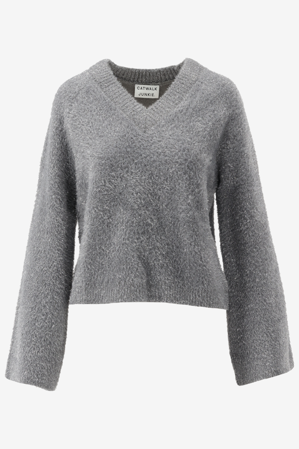 v-neck fuzzy lurex knit