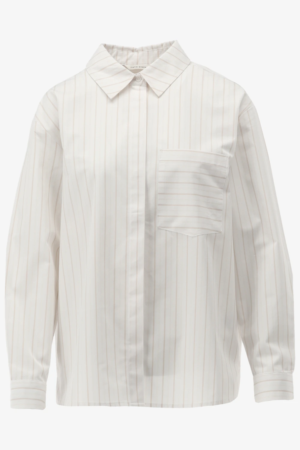 Gestreepte blouse met borstzak en manchetband