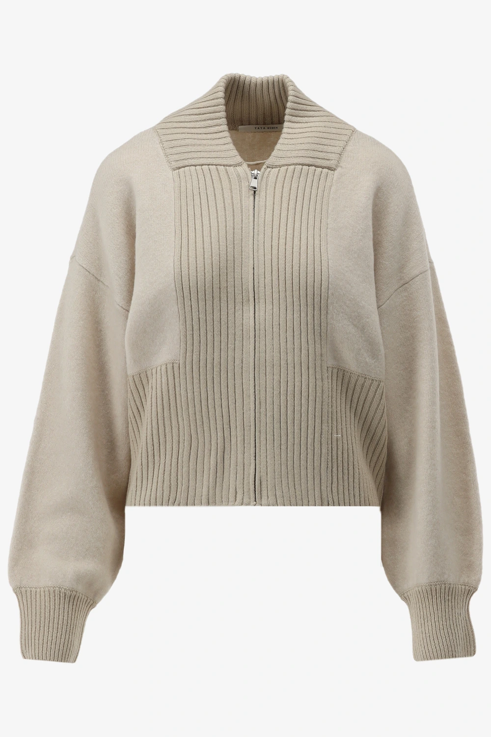 Gebreid bombervest met ritssluiting en ribdetails